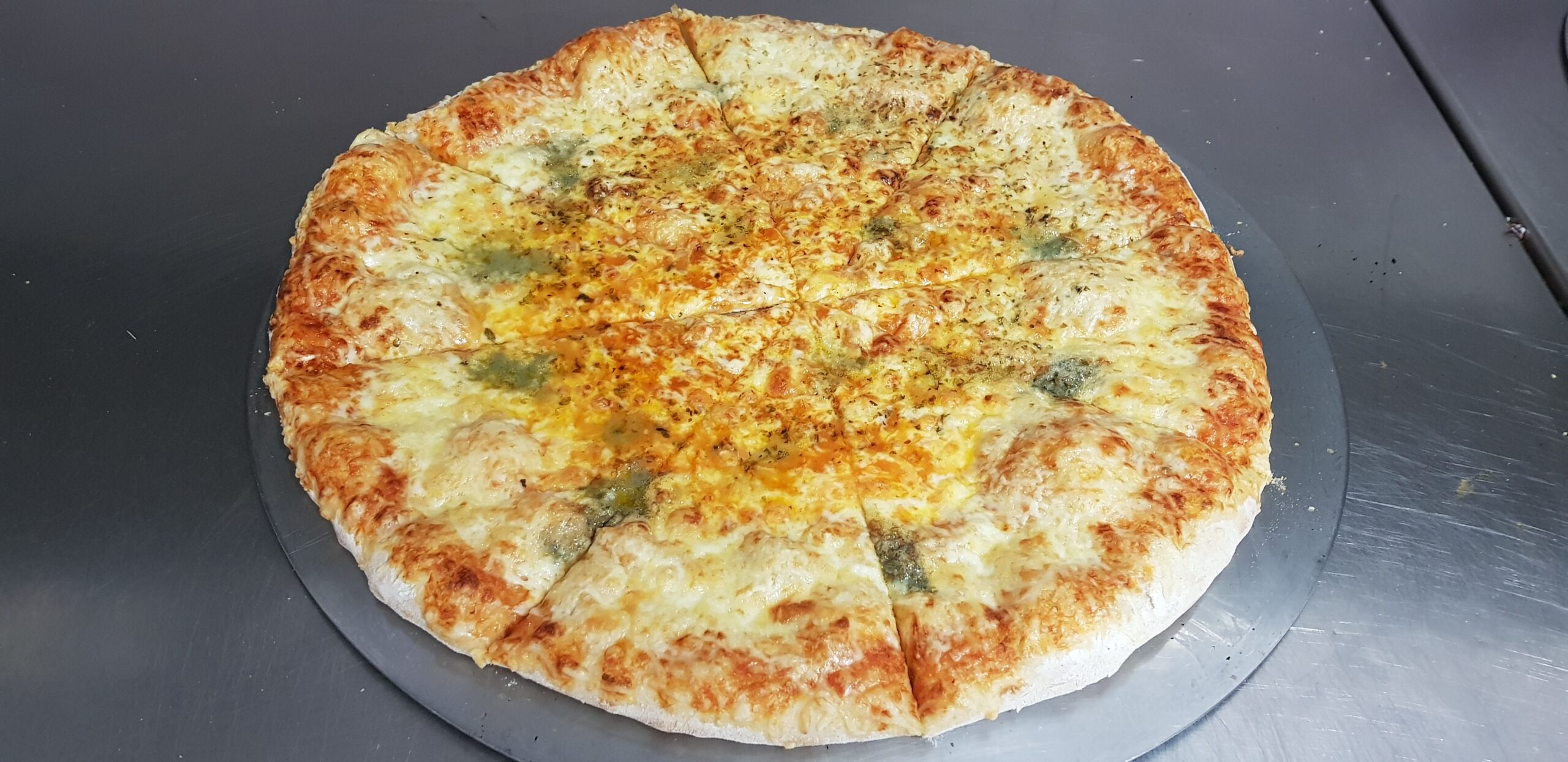 Tomate, orégano, Gouda, Mozzarella, Emmental, Roquefort, Edam