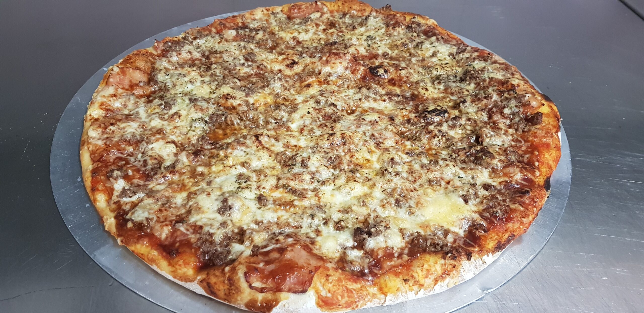 Tomate, queso, orégano, Bacón, ternera, salsa barbacoa